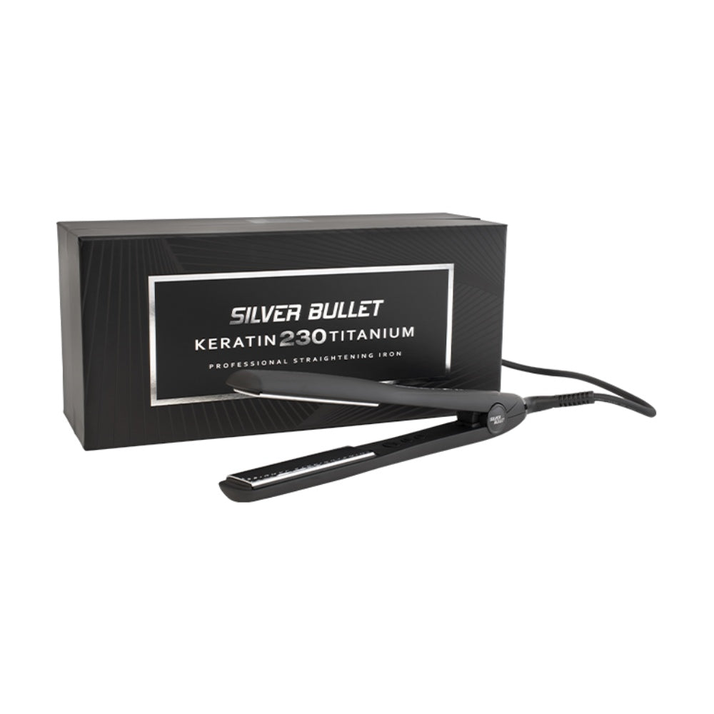 Take performance to the next level with Silver Bullet Keratin 230 Titanium Hair Straightener. If you struggle with straightening and find your average flat iron isn€™t up to the task, struggle no more. Keratin 230 Titanium Straightener will tame unruly, thick or coarse hair. Providing heat up to 230°C, this straightener is an absolute prerequisite for styling even the most unmanageable hair