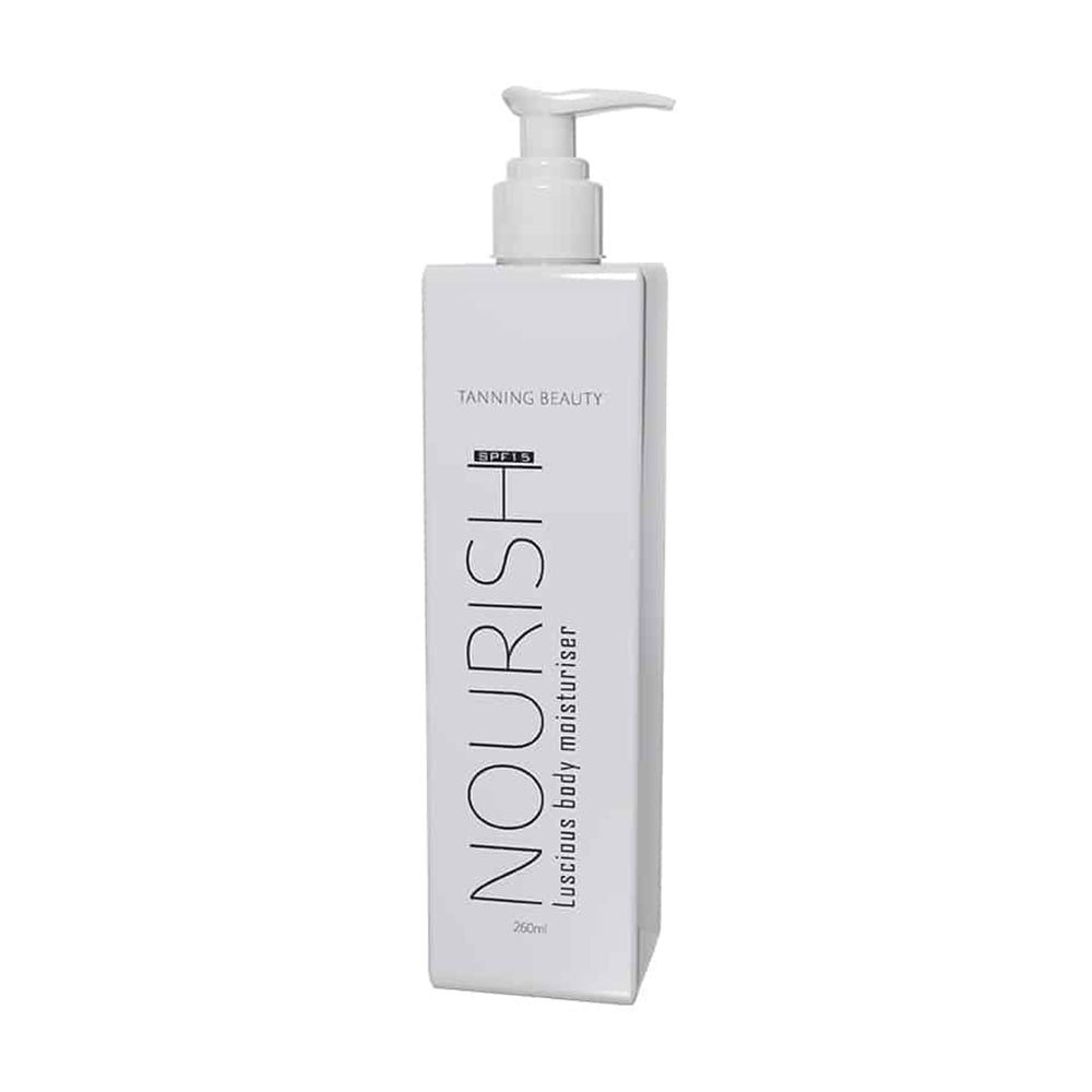 Every tanner knows the importance of moisturising their skin to maintain and extend the life of their tan. Nourish body moisturiser has been enriched with the precious extract of cucumber to deeply nourish and hydrate the skin plus the calming effects of Aloe Vera and powerful anti-aging Green Tea extracts plus Vitamin E packed for rich hydration and nourishment. Nourish is an all natural body moisturiser that will have your skin glowing all year round with SPF 15 for added protection.