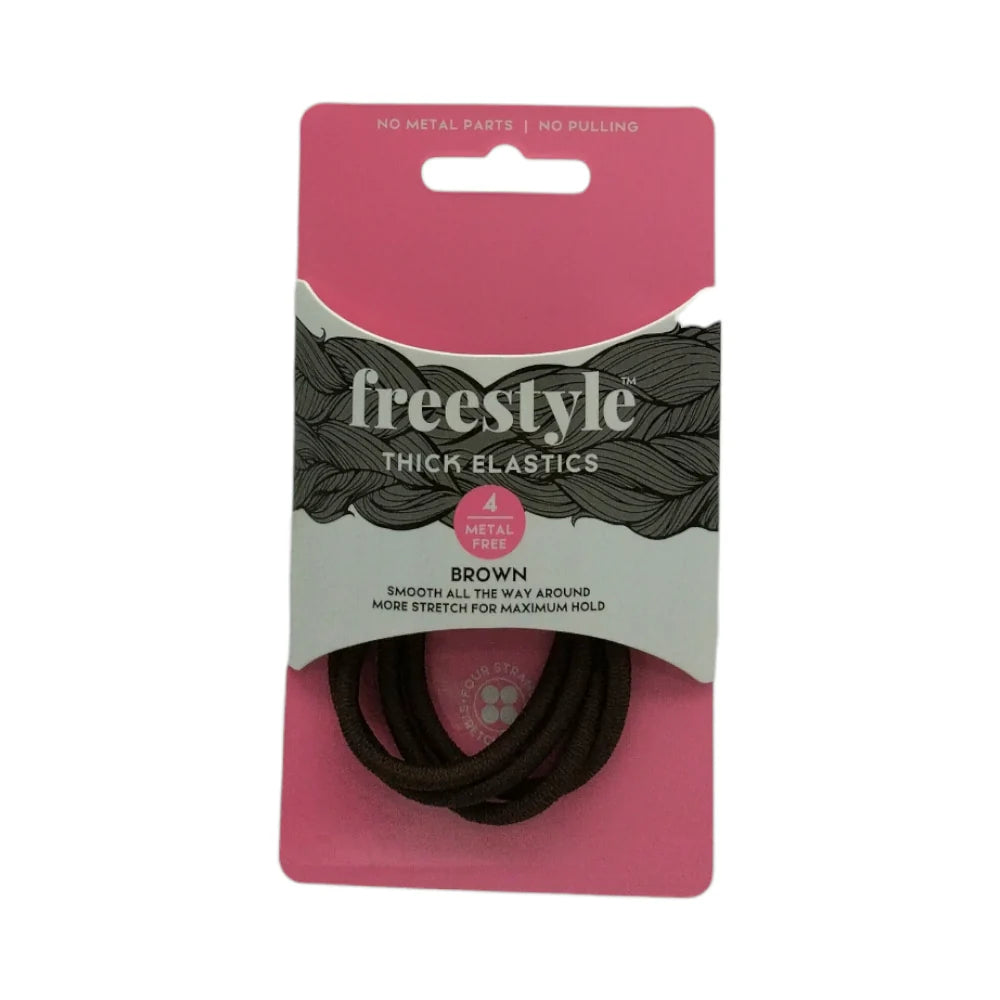 Expertly create long-lasting hairstyles with the Freestyle Thick Elastics. Made of durable, elastic material, these brown elastics provide a secure hold without damaging your hair. The metal-free design is perfect for those with sensitive scalps. Keep your hair in place all day with these versatile elastics.