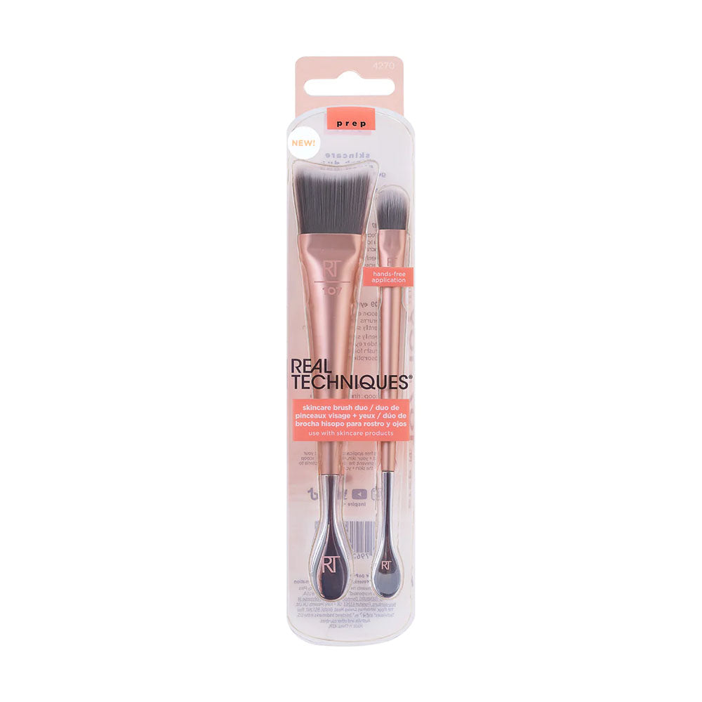 Get make-up ready skin with the Real Techniques Skincare Brush Duo by using the scoop to apply and brush to smooth skincare favourites. Hands-free application of your favourite skincare products to help protect your products and your skin.